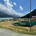 Das 0-Zimmer-Chesa Munteratsch 2-Zimmerwohnung 101 Typ E liegt nur 7 Gehminuten vom Silvaplanersee entfernt und begrüßt seine Gäste mit einer Sauna. Erleben Sie pure Entspannung und genießen Sie einen Spielplatz und einen Golfplatz.